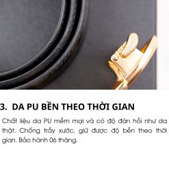 • Chất liệu: DA PU, Mặt thắt lưng được mạ Crom cao cấp với chất liệu thép không gỉ giúp khoá có độ bền cao, sáng bóng.